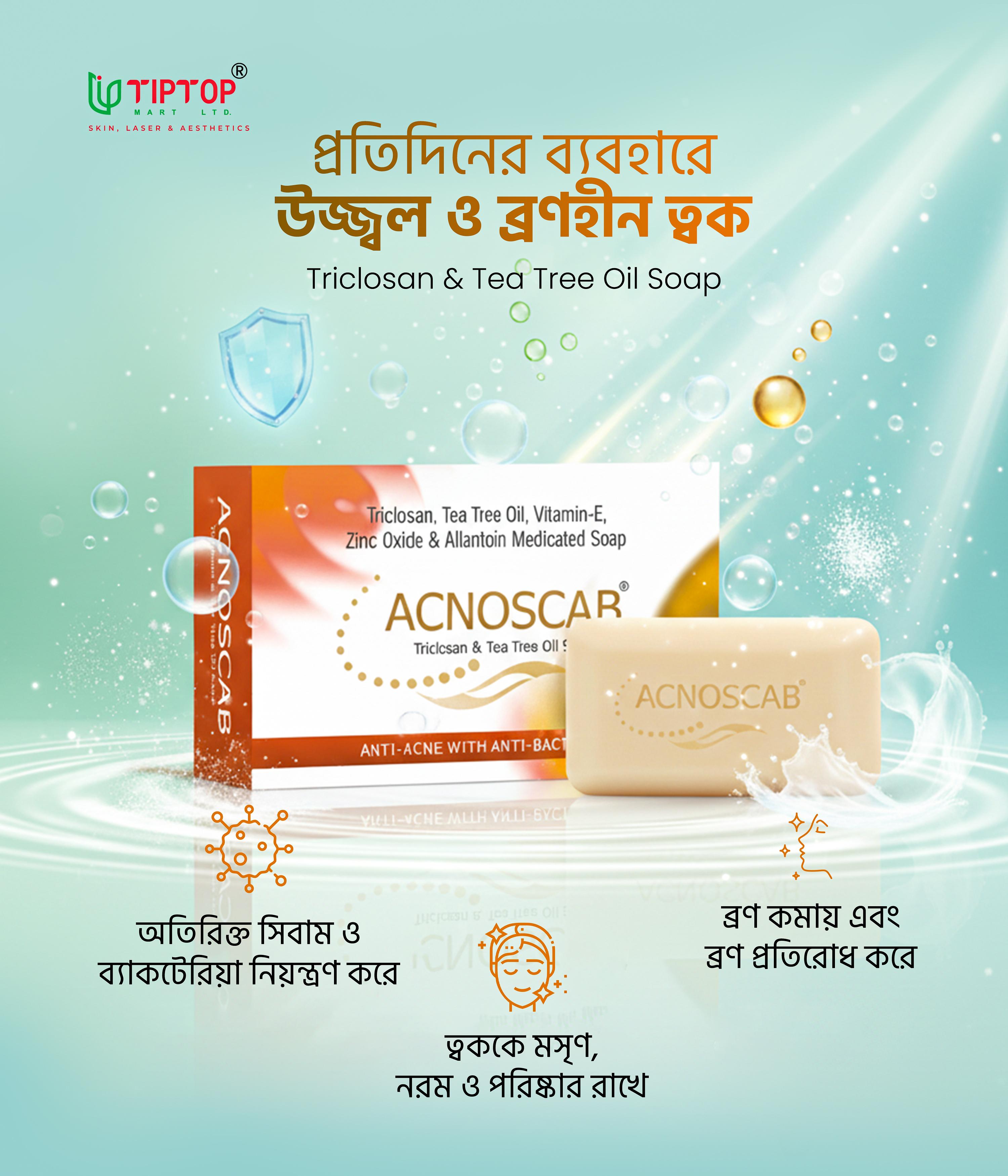 Acnoscab Soap is enriched with acne-combatting ingredients that: